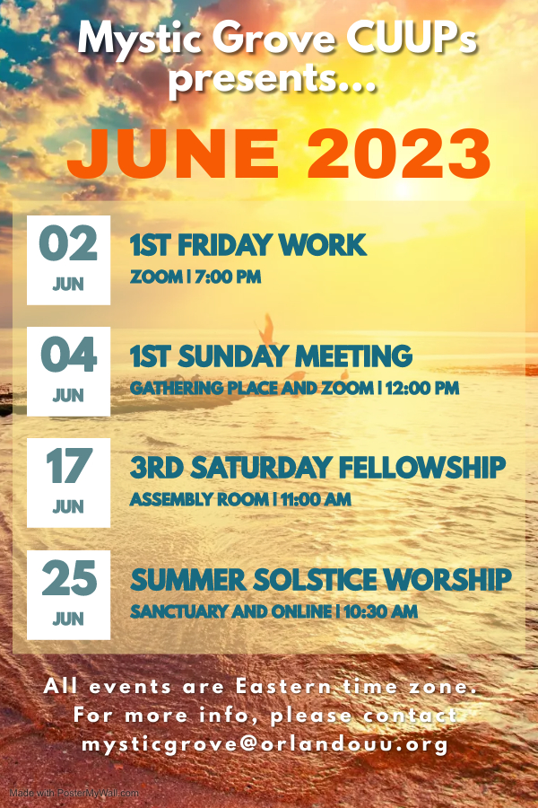 The Mystic Grove CUUPs June 2023 Monthly Events is posted.